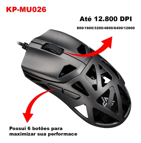 Mouse Óptico Gamer 6 Botões Knup KP-MU026 é a escolha perfeita para quem busca desempenho e precisão em jogos. Com um sensor instantâneo A825F e uma incrível resolução de até 12.800 DPI, este mouse oferece resposta rápida e movimentos precisos, essenciais para jogadores que exigem alto desempenho. Além disso, a durabilidade é garantida com botões que suportam até 5 milhões de cliques, oferecendo longa vida útil para intensas sessões de jogo. Seu design ergonômico e as dimensões ideais (120x61x39mm) proporcionam conforto e facilidade de manuseio, mesmo durante maratonas de jogos.